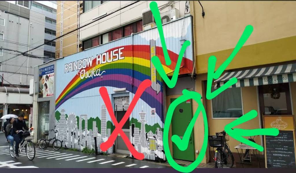 This is our building and the entrance is through the green door.